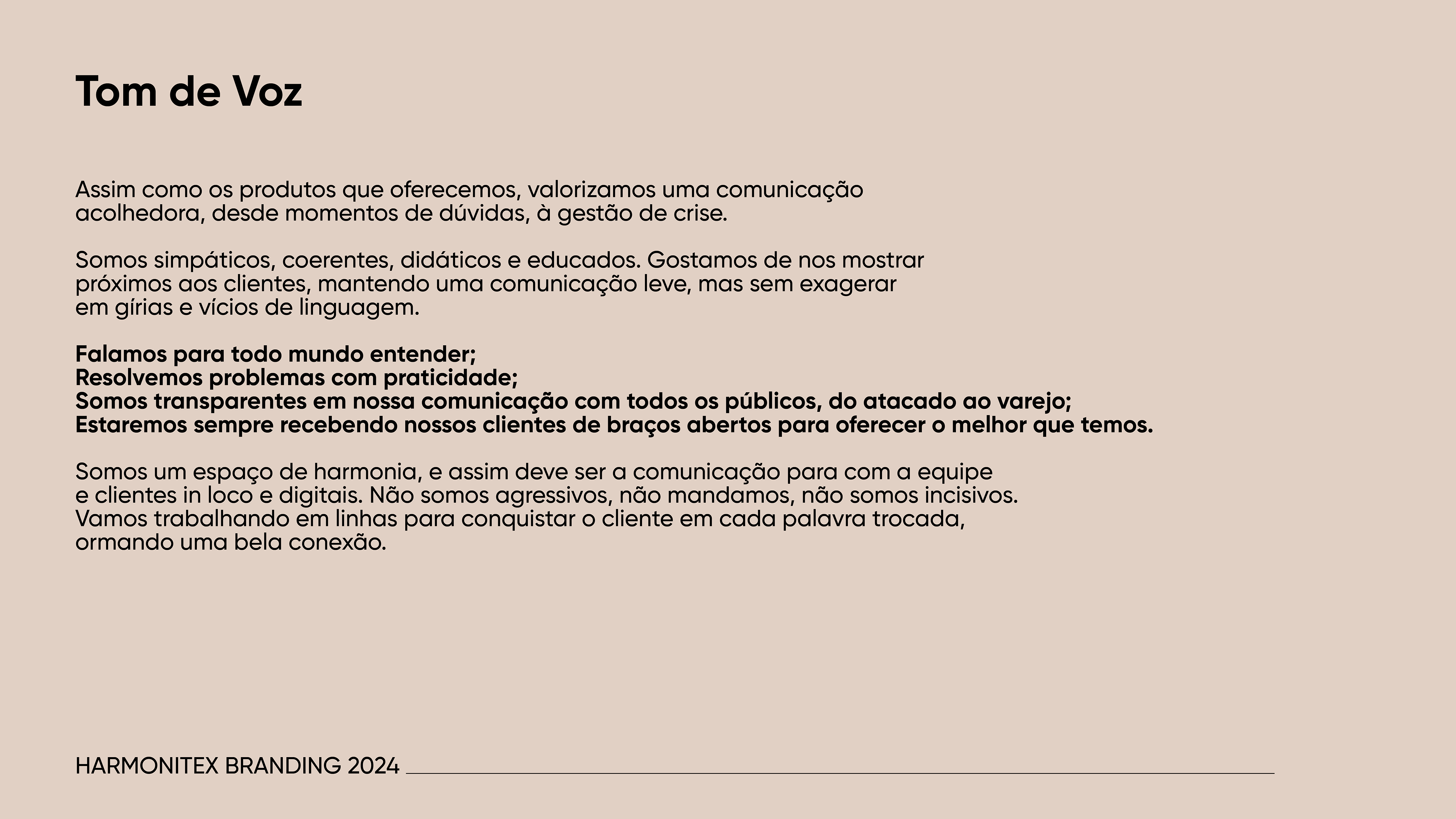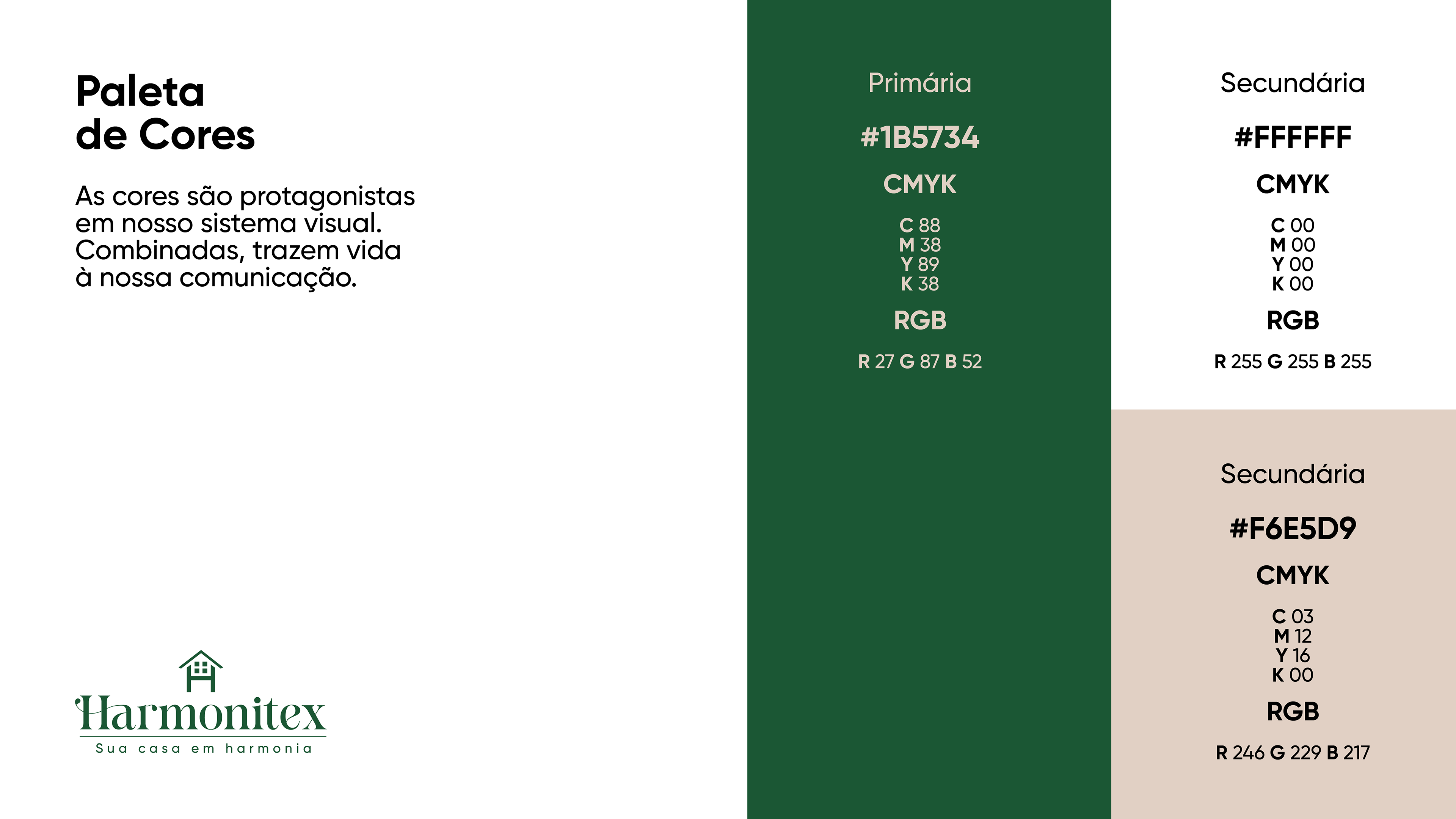 O novo branding da HARMONITEX trouxe uniformidade e força à comunicação da marca, transmitindo profissionalismo e confiança. O brandbook tornou-se a principal ferramenta de referência para manter a consistência visual, apoiando a expansão da empresa e o fortalecimento de sua imagem no mercado.