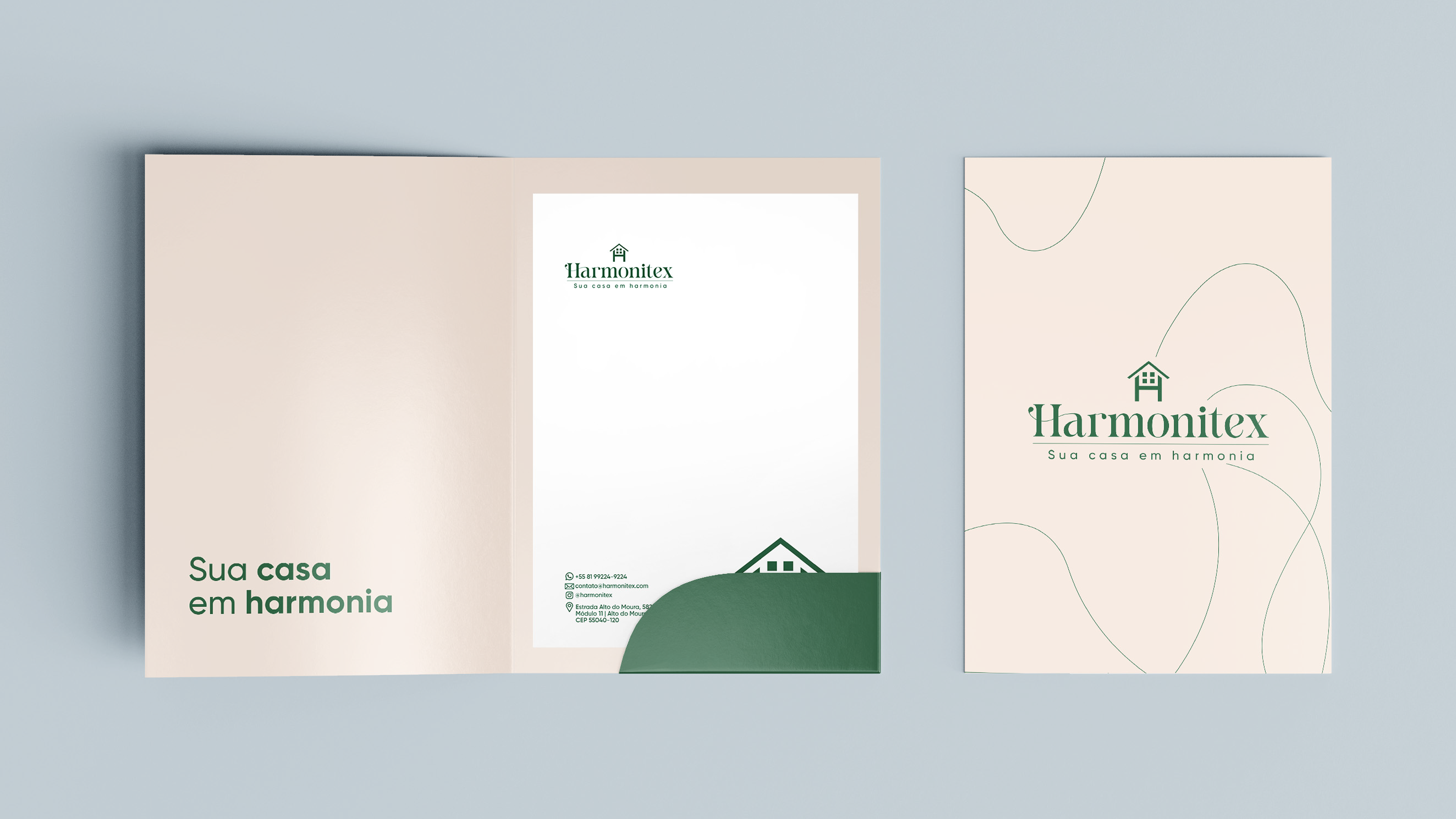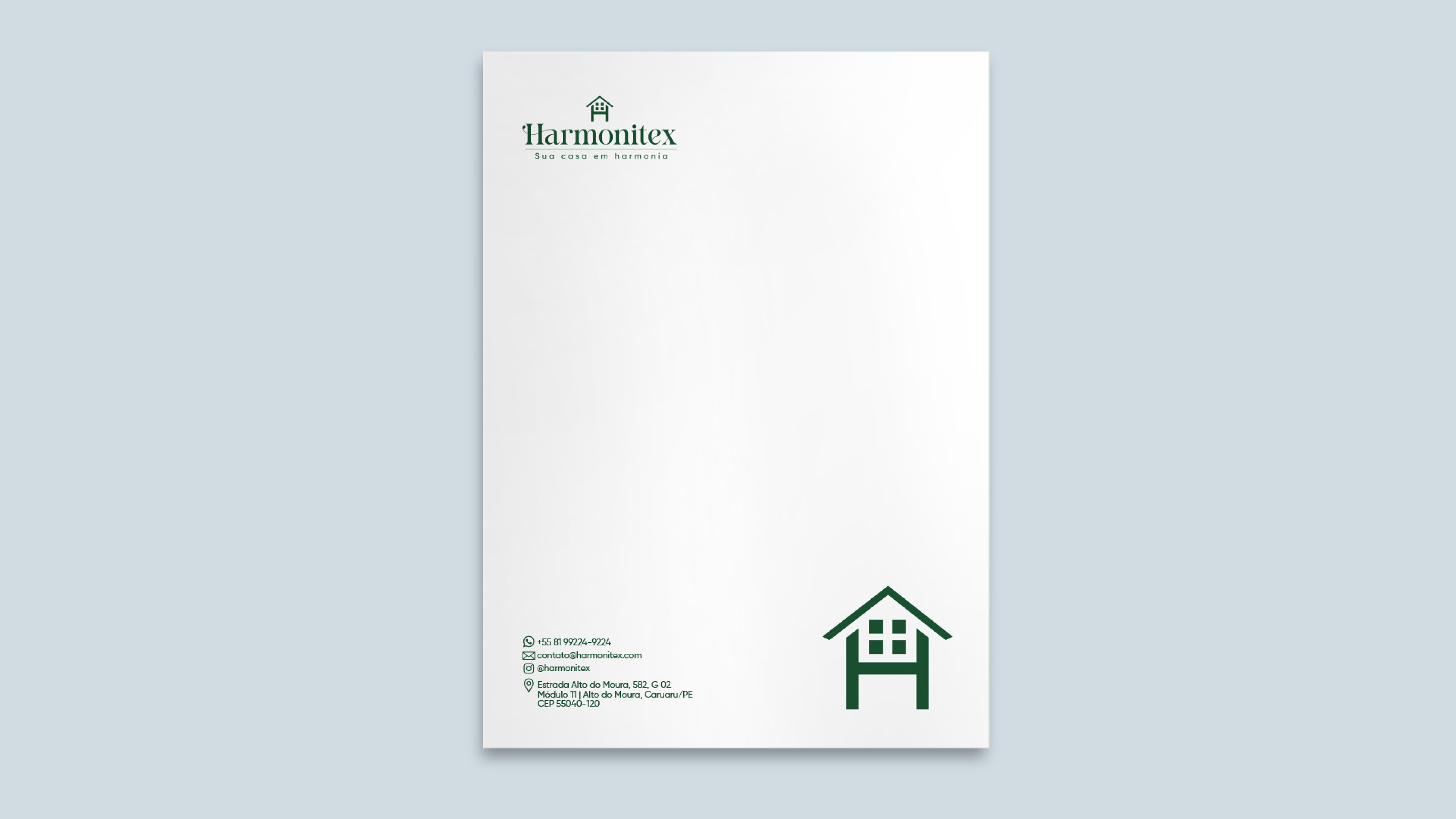 A HARMONITEX precisava de uma identidade de marca sólida e consistente para fortalecer seu posicionamento no mercado e transmitir seus valores de forma clara e memorável. O principal desafio era traduzir a essência da empresa em um sistema visual coeso, aplicável em diferentes pontos de contato – desde materiais institucionais até comunicação promocional.